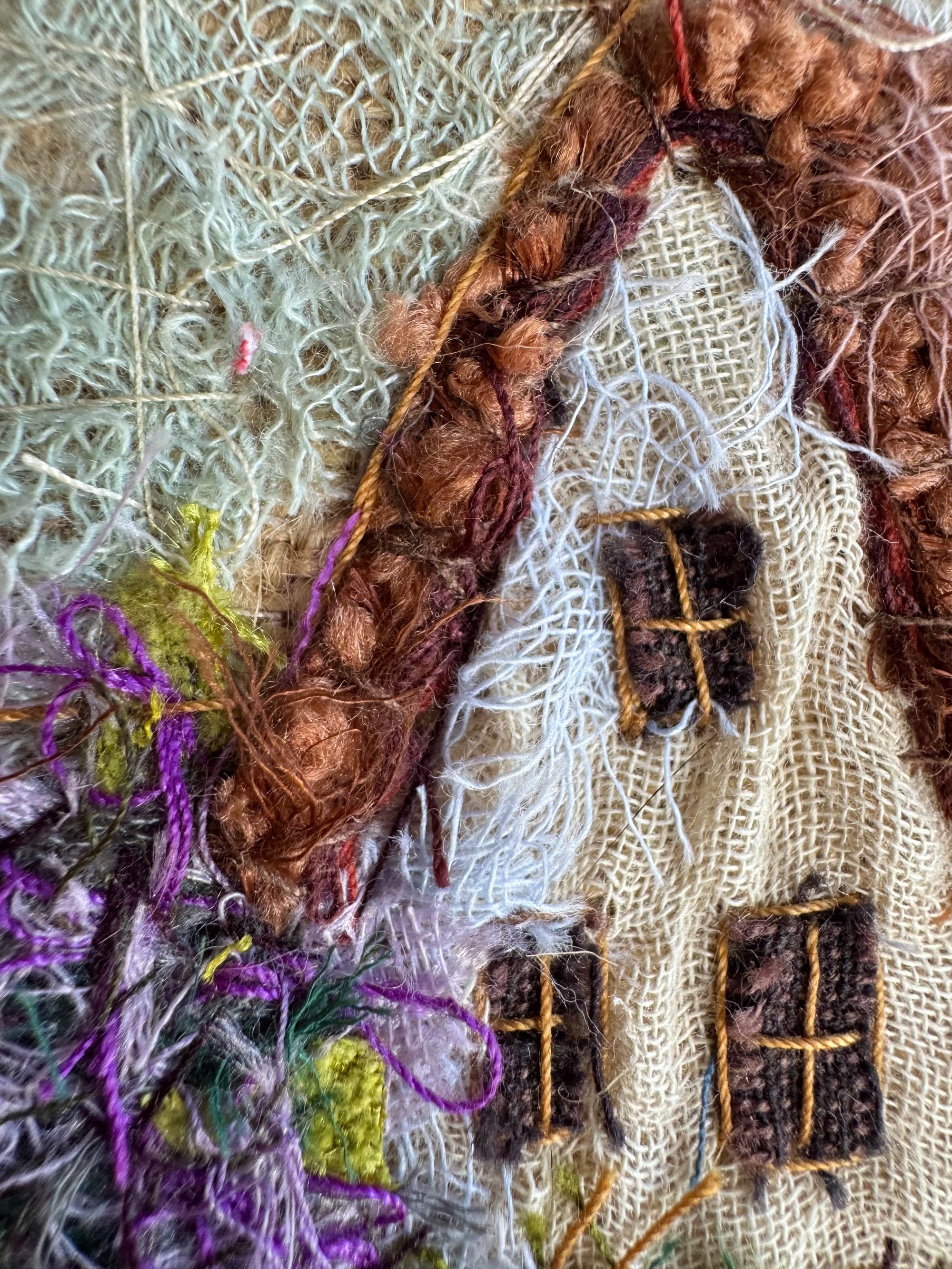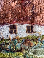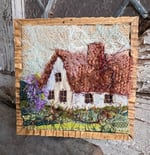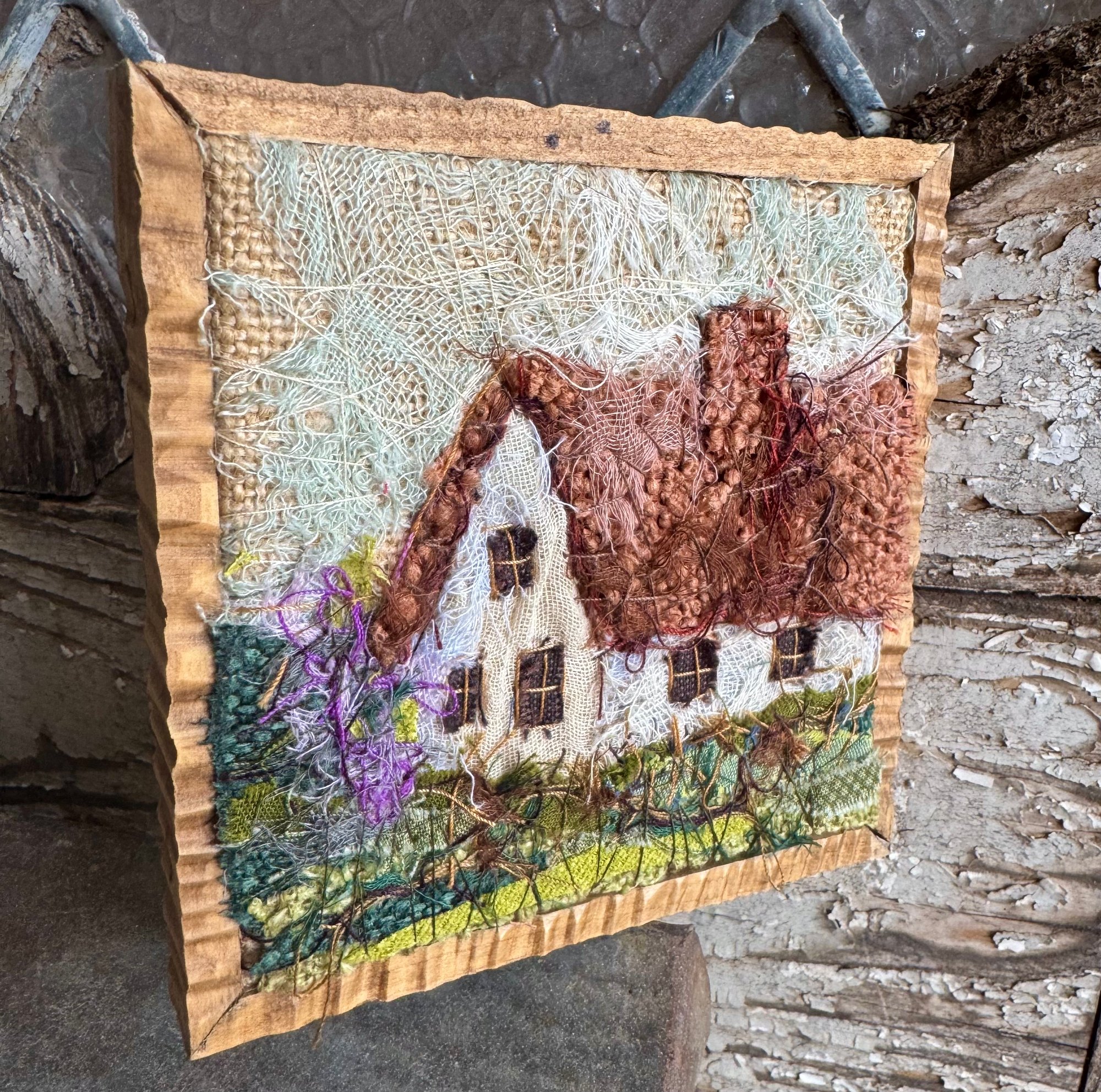 4" x 4" 100% hand-stiched fiber artwork. Custom solid wood frame