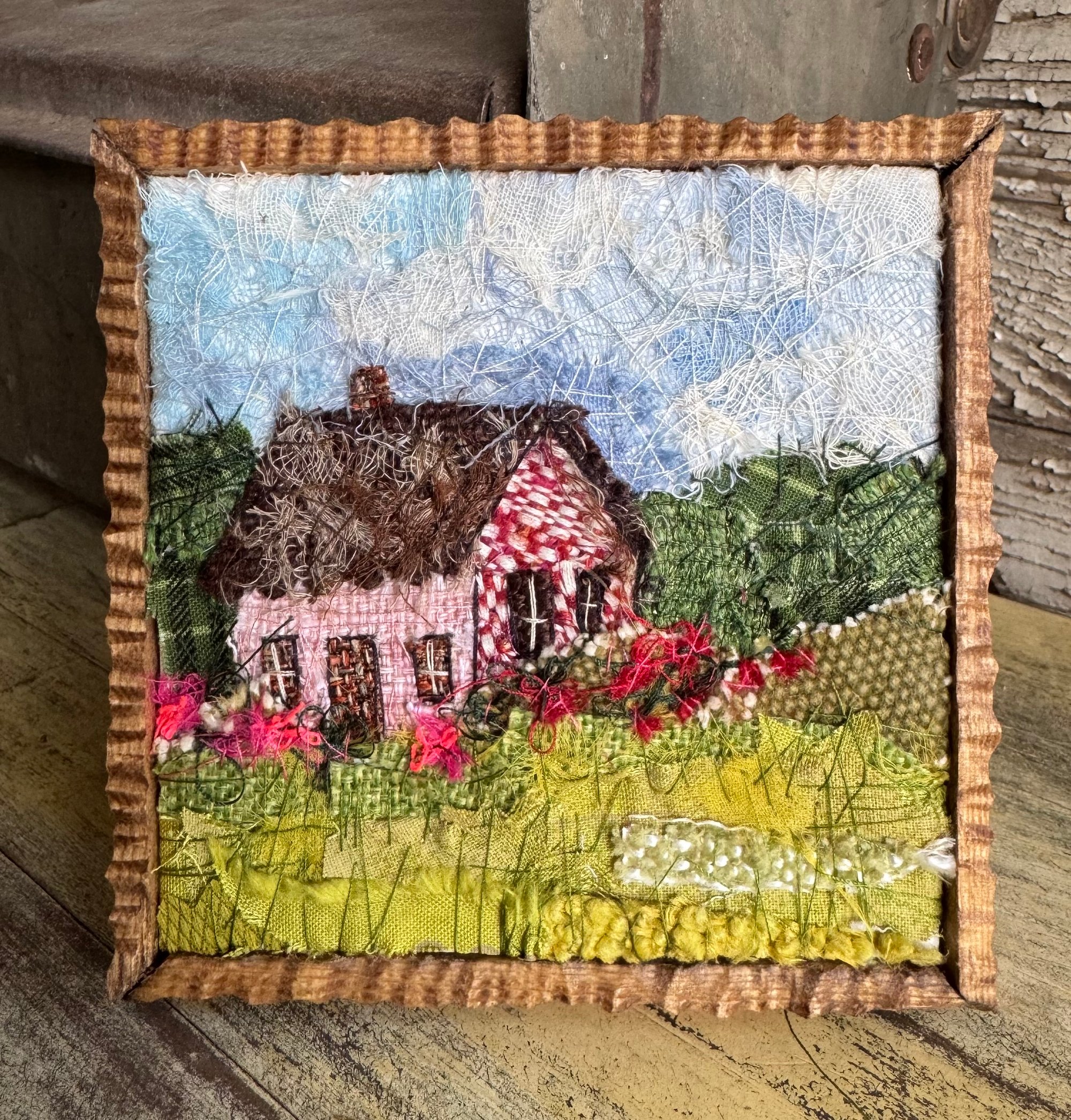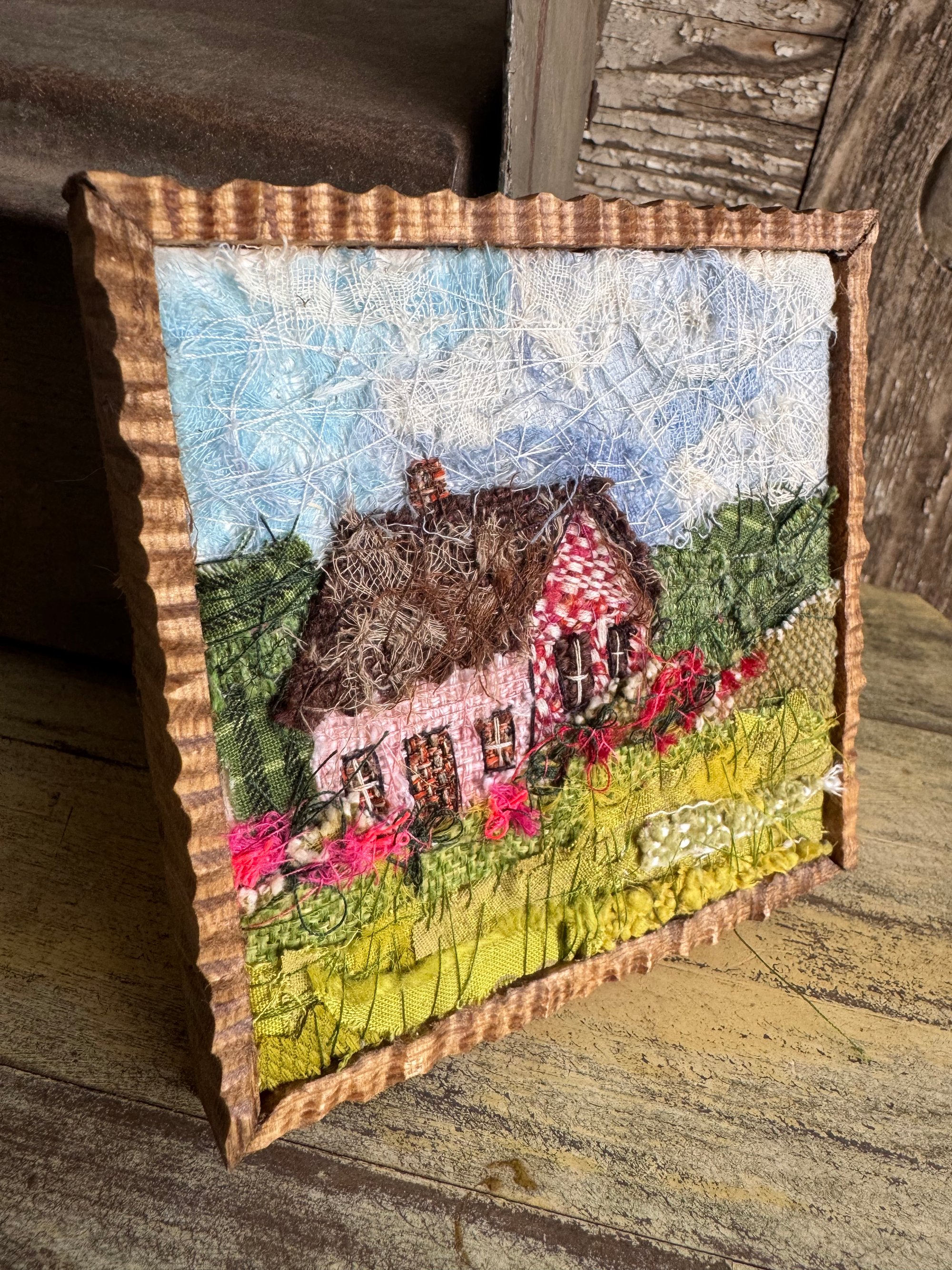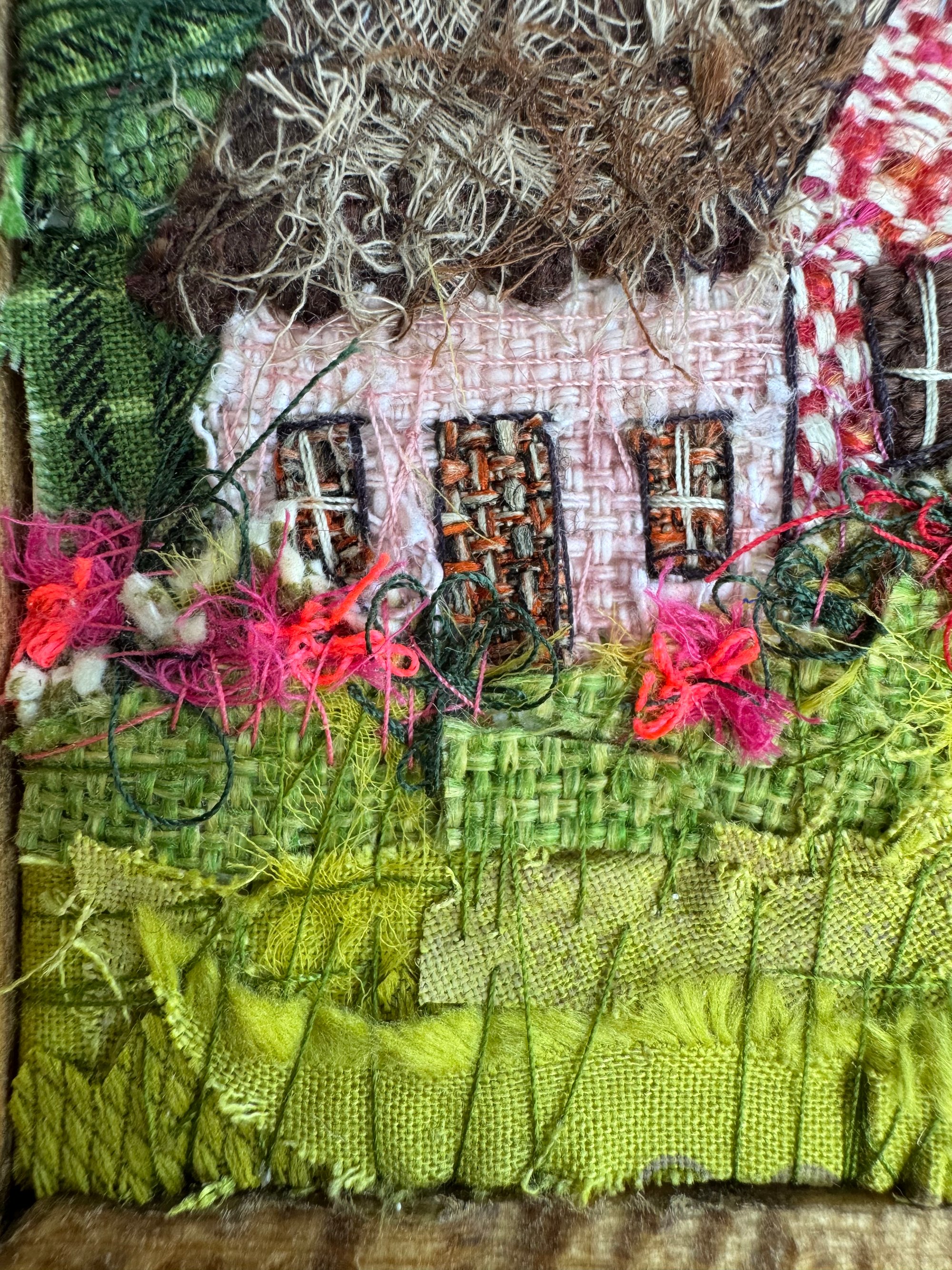 100% hand-stitched fiber work. Custom wooden handmade frame.