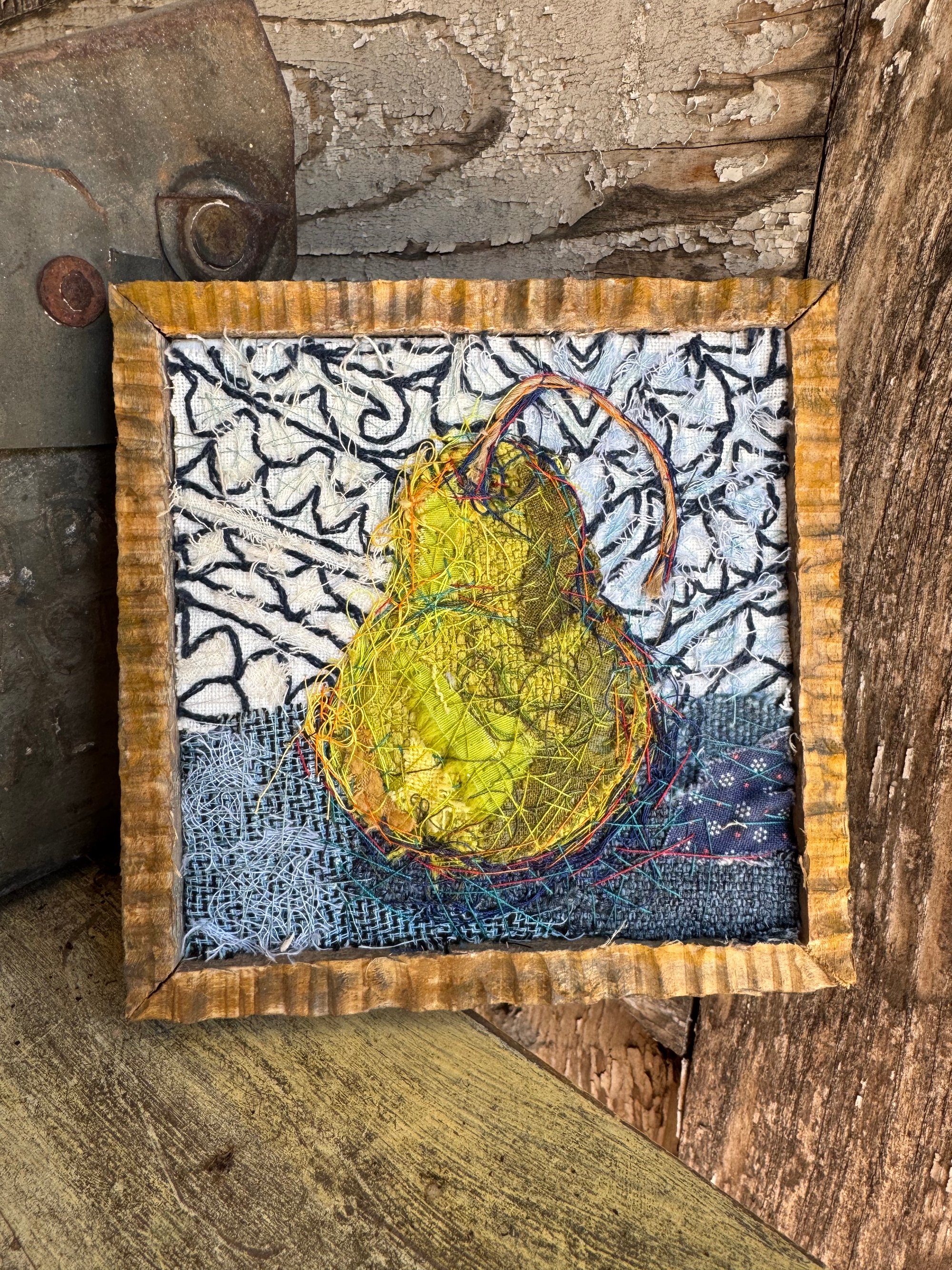 4 x 4 100% hand-stitched fiber work. Handmade custom solid wood frame.
